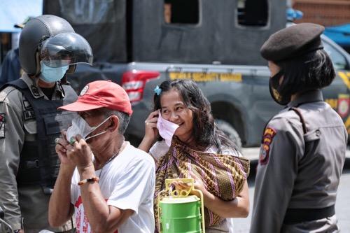 Puluhan pengendara maupun warga yang berada di pasar cahaya didapati petugas tidak mengenakan masker. Oleh petugas sebelum diberikan masker warga tersebut diminta untuk selalu mengenakan masker agar terhindar dari penyebaran Virus Covid-19.
